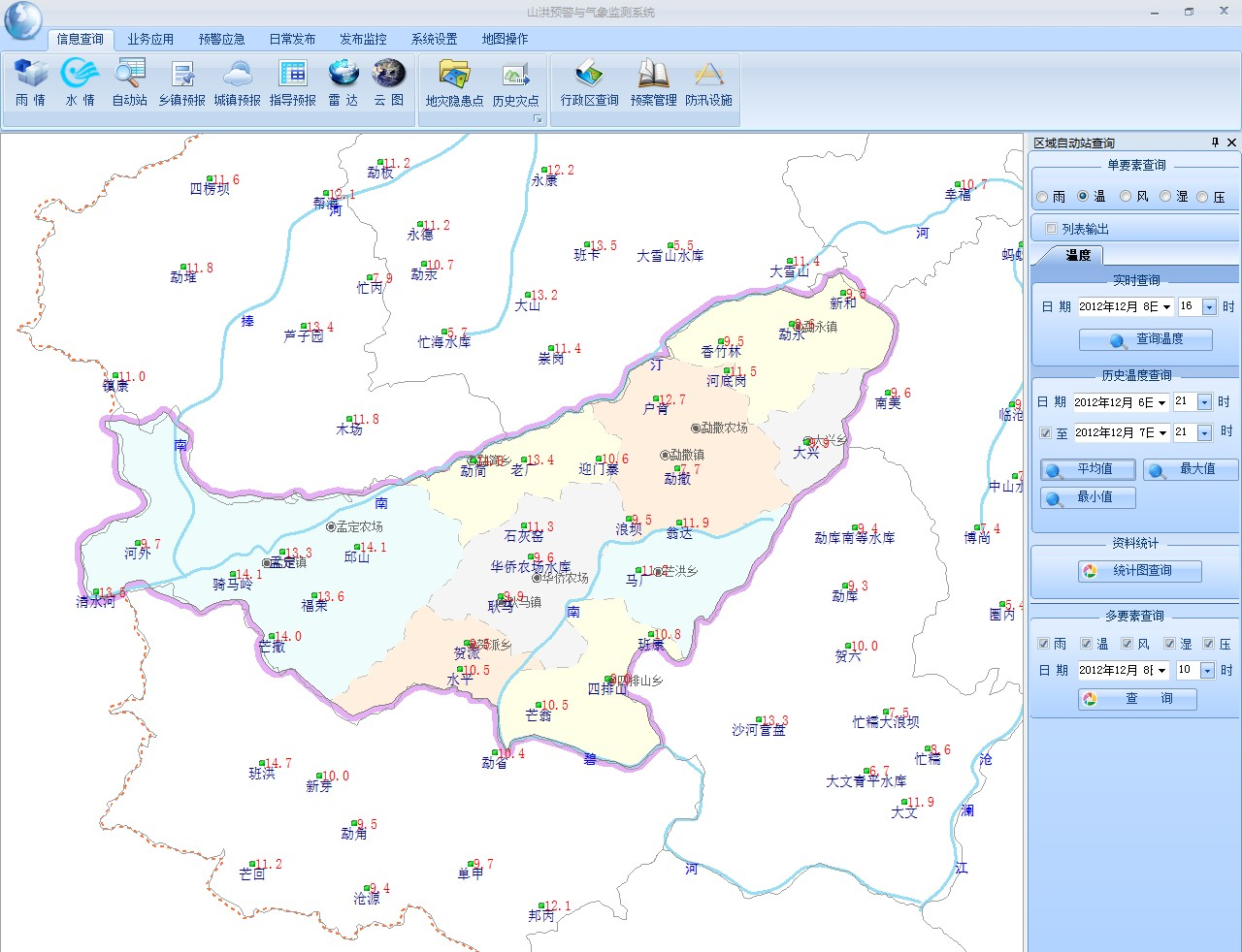 云南省临沧市耿马县山洪防治气象保障工程预报预警平台是针对暴雨频发,地质地貌复杂,易发生山洪、泥石流、滑坡等地质灾害的地区着力打造的专业级技术服务平台,可为各级部门提供最优化的系统解决方案。本平台科学化整合各类气象基础数据,集雨水情采集系统、监测系统、预警系统、发布系统于一体,通过对各类数据的查询与分析,大幅度提高了山洪灾害监测预警效率,可减少人民群众生命财产损失。